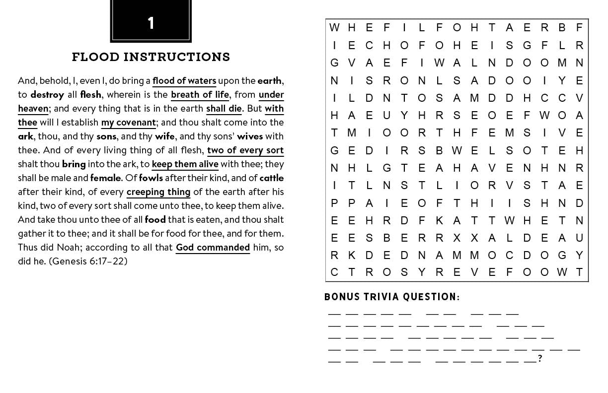 What’s better than a Bible word search puzzle? A Bible word search puzzle containing a hidden Bible trivia question!