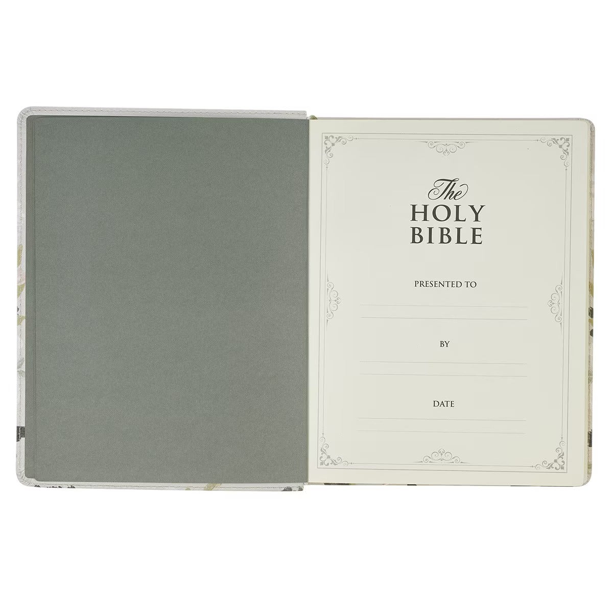 Cream Floral Faux Leather KJV Note-taking Bible - Psalm 91:4