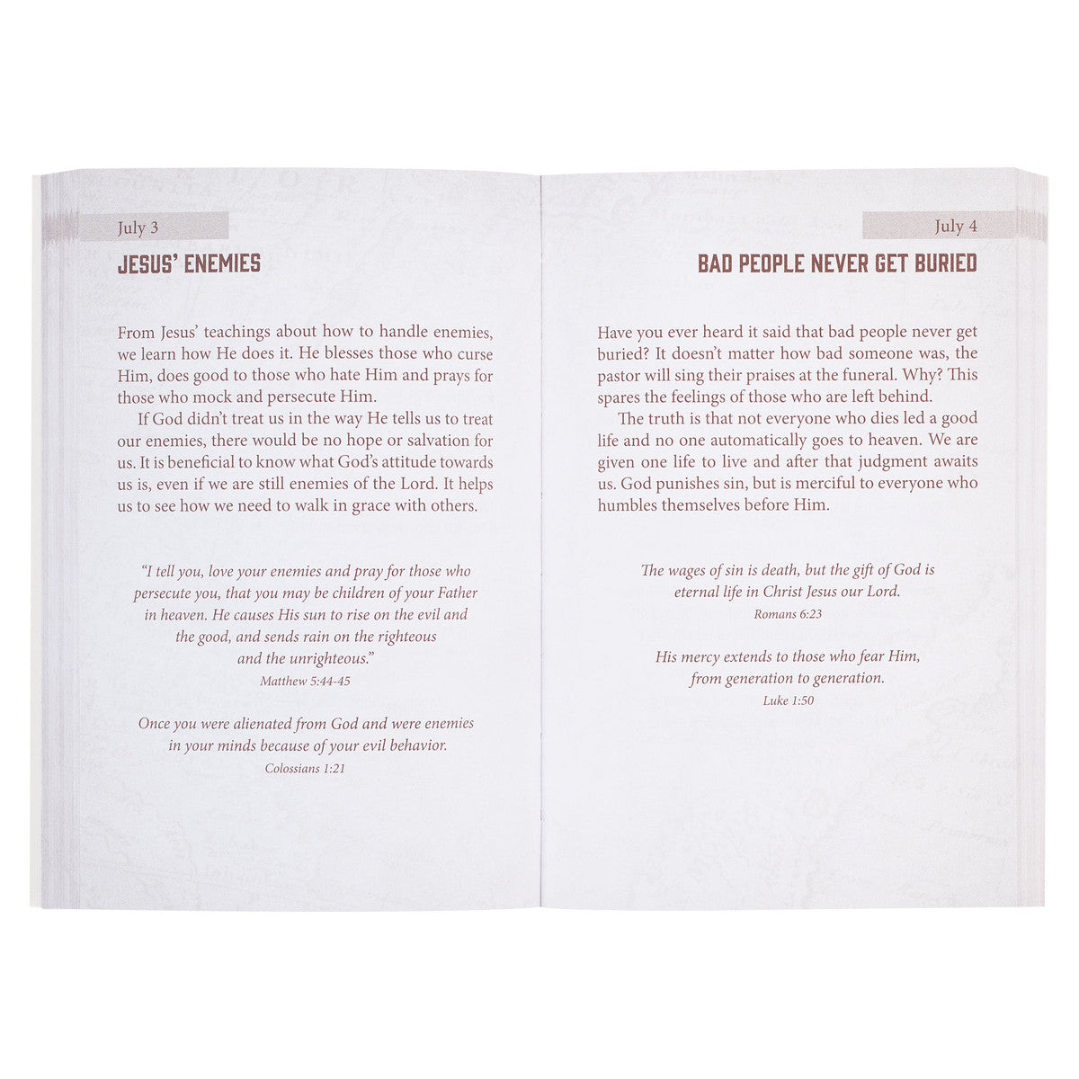 With 366 devotions ordered by month, this devotional allows you to cycle through the book year after year. Each day's entry starts with a short devotional thought that will inspire you to reflect on the accompanying Scripture.