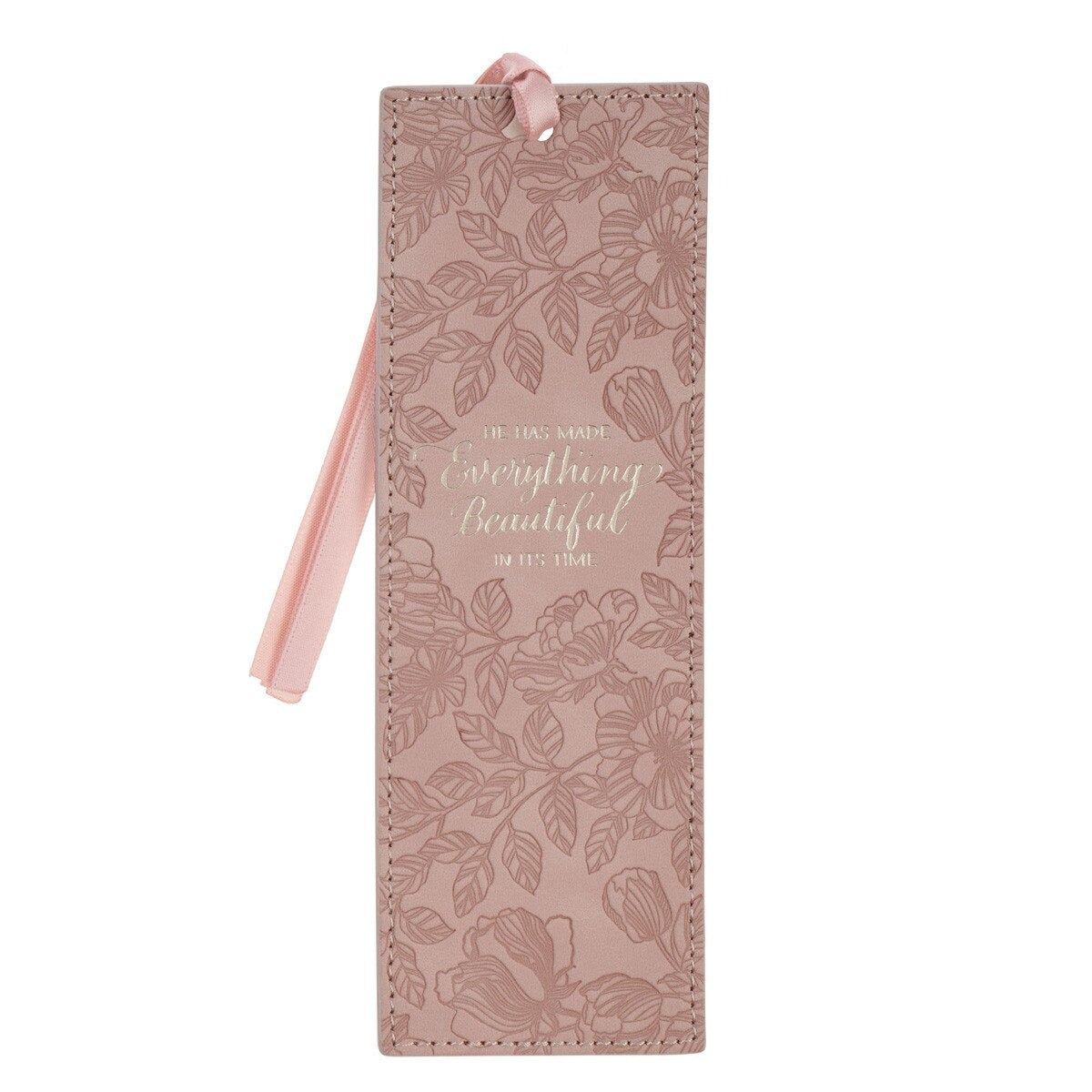 Everything Beautiful Blush Floral Faux Leather Bookmark - Ecclesiastes 3:11
