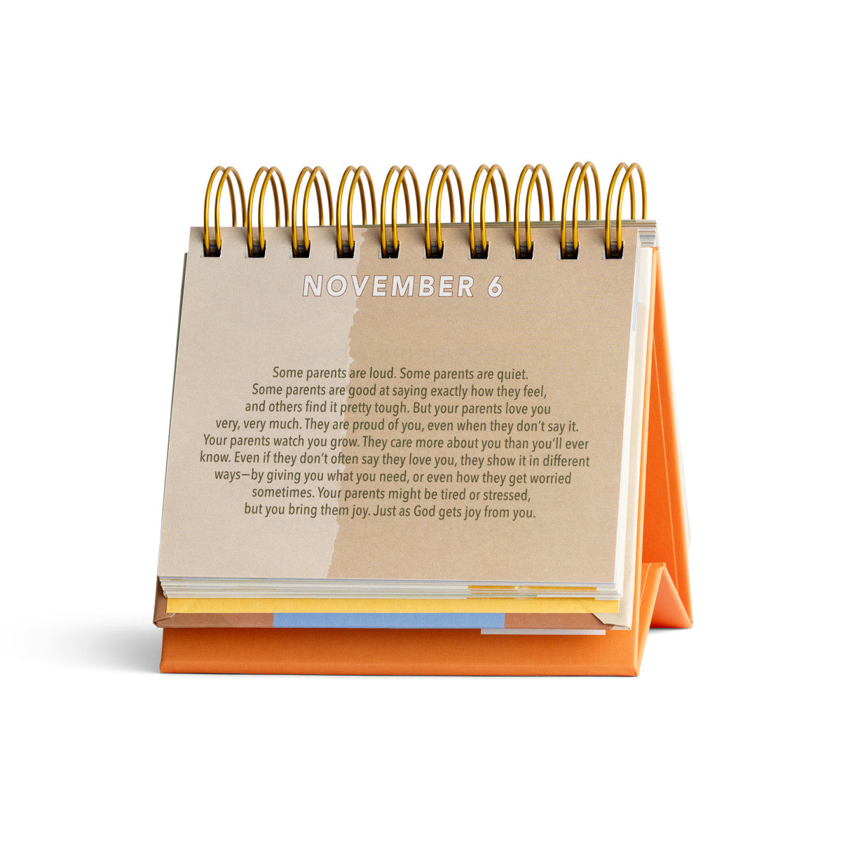 Mighty Kids: 366 Bible Verses & Mini Devos is an Inspirational DaySpring DayBrightener perpetual calendar designed to inspire and encourage children every day. Each day of this spiral bound daily flip calendar features a Bible verse or a mini devotion tailored to young hearts. Children are provided with daily reminders of God's love, forgiveness, and constant presence in their lives. It serves as a wonderful tool to nurture their faith and uplift them throughout the year or Scripture memory.