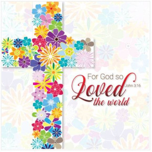 Pack of 5 Christian Easter cards, with Bible verse inside and 5 white envelopes.- Design: So Loved
